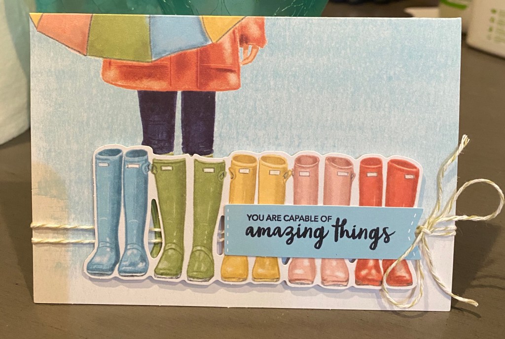 I especially liked the stamp from the stamp set that was included that said – No matter the weather we are in this together…