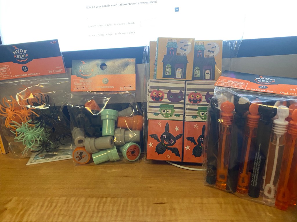 2. For the time being, until Halloween, I am only buying the cheap Dollar Tree candy to keep in the bowl. The candy that I can live without. I have also bought some non candy items to put in the bowl: little stamps, mini pens, little stickers, spider rings, erasers and notepads.