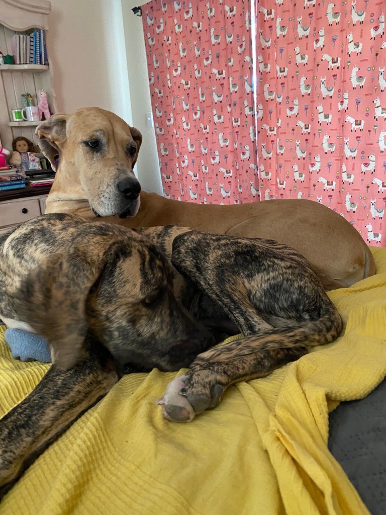 He loves his big pillow bed, even though half of him hangs off it now. He knows that it is his spot. And in case you are wondering, he doesn’t much like to be on the big king size bed with everybody on it. He doesn’t like to be crowded.