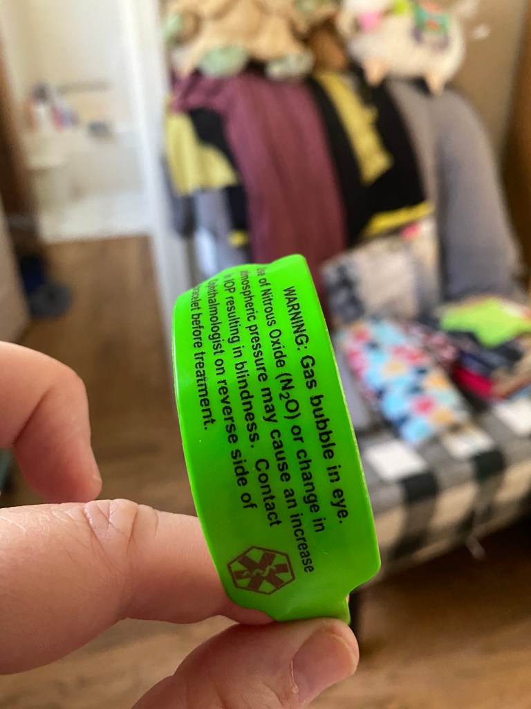 Recovery consists of laying facedown for 4 hours a day… so the gas bubble can put pressure on the retina and help it to reattach. It is absolutely not fun. But I did it.