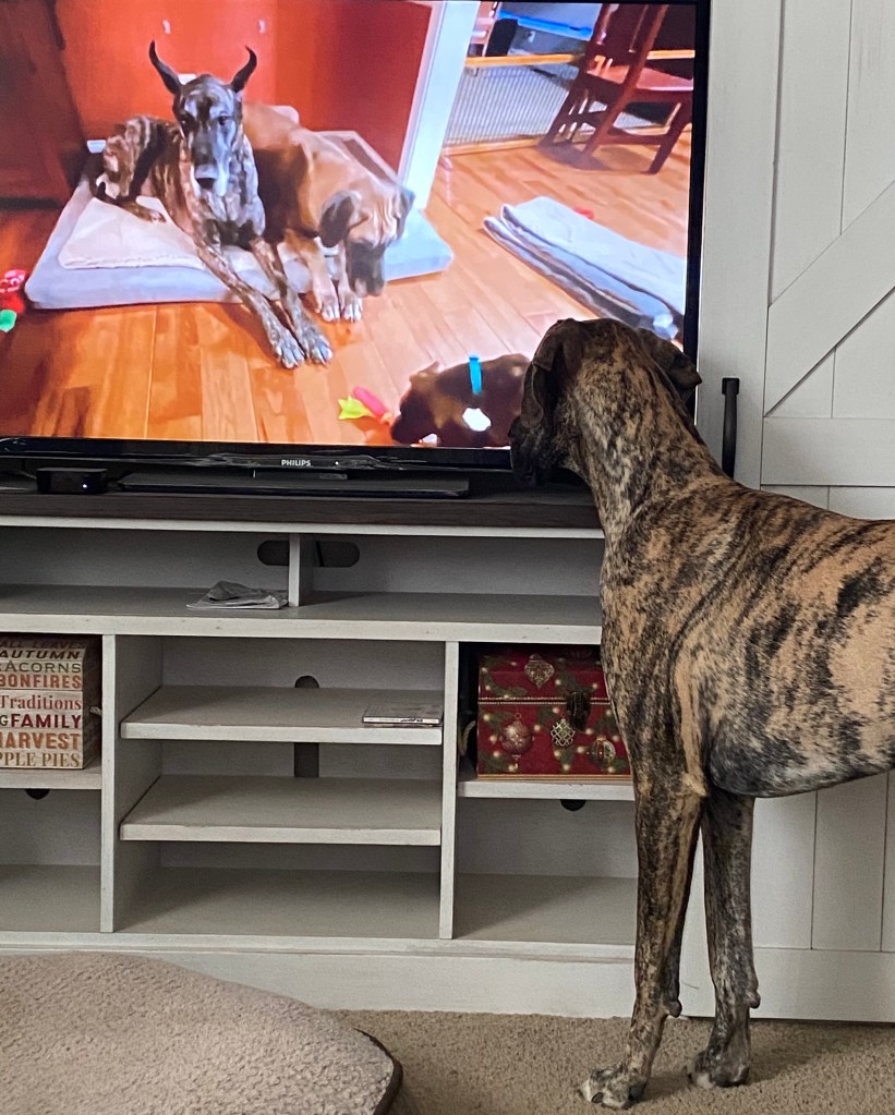- Right now, as I am typing, the Great Danes, Hope and Cosmo are sleeping in each others crates. Hope is in Cosmo’s crate and Cosmo is in Hope’s crate. The two little dogs, Jubilee and Journey are curled up in the closet next to me, sound asleep. Journey is snoring. It is so peaceful in the house right now.