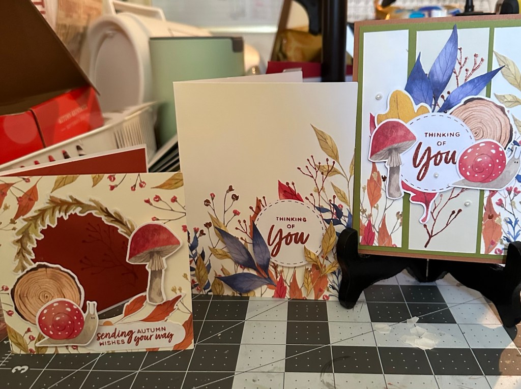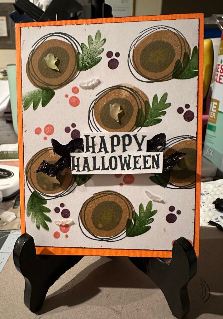 I have started my #HallowThanksChristmasweengivingcardseries – 100 Days til Christmas where I try to make as many card as I can between now and Christmas. Most of my cards I sell in my Scrap4Less booth from $2 on up – depending on how fancy the card is.