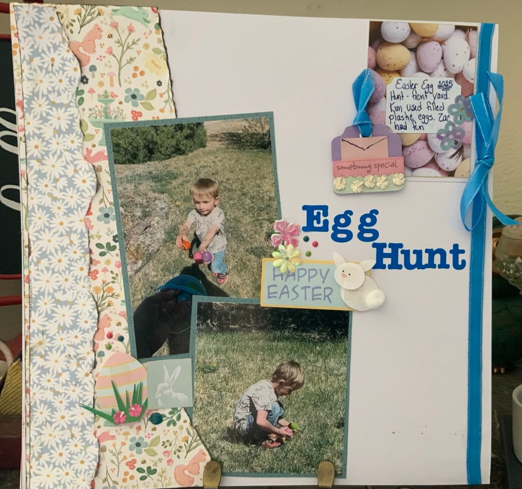 Here is my layout with blue ribbon, Easter page, and torn paper. I like how it turned out. This will be fun.