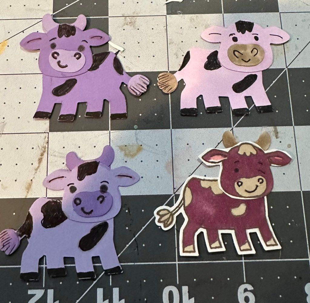 The poem above is still one of my favorites… so when I saw that Gingers Corner (on Facebook), was doing another embellishment with the theme being the color Purple, I knew I had to make purple cows.